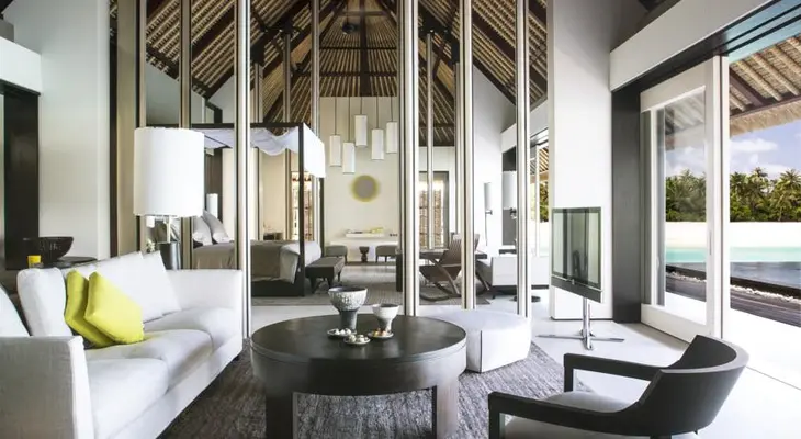 "Swanky resort in the northwestern Maldives, with a de Havilland seaplane, Jean-Michel Gathy-designed interiors, and the islands’ only Guerlain Spa." Full review