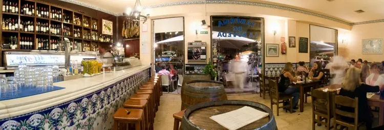 Family establishment run by two brothers. Sample wines and tapas in the wine shop and the two-storey dining area where barrels are used as tables. — Michelin Guide
