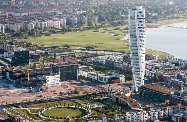 In the lovely Västra Hamnen area, you can't miss the eye-boggling Turning Torso, a futuristic skyscraper that twists through 90 degrees from bottom to top — Lonely Planet