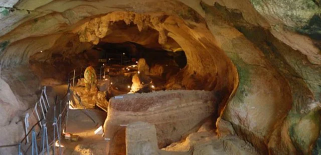 “The semifossilized remains of long-extinct species of dwarf elephants and hippopotamuses that roamed the island some 125,000 years ago were found in a cave here.”
