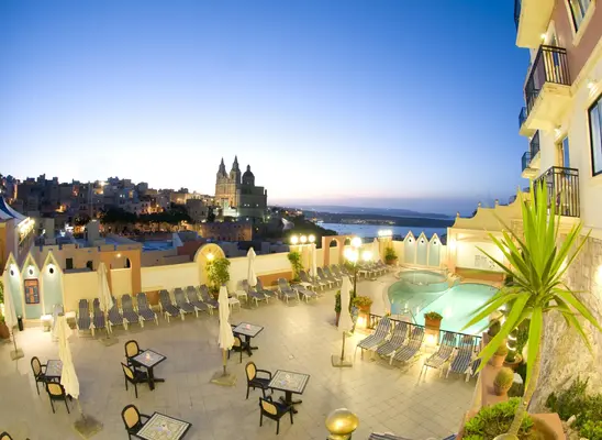 "Pergola, across the bridge from Mellieħa's main road, offers comfortable, neutrally decorated hotel rooms and self-catering apartments (entry is at the top of the steps)." Full review