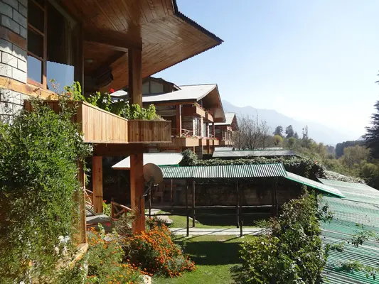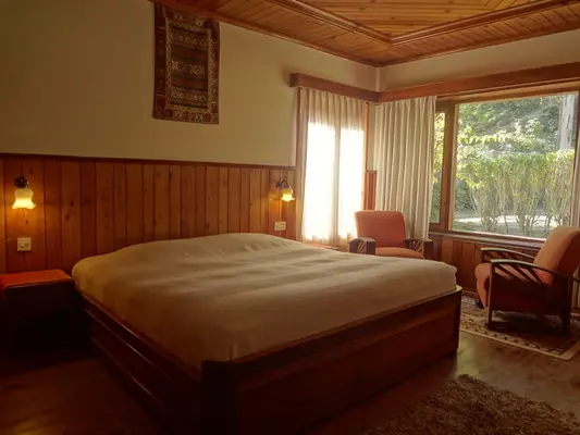 “Immaculate, huge self-catering two- and three-bedroom suites with baths in a tastefully designed building. Recommended for groups of 6–8. Meals can also be ordered. ₹7500.”