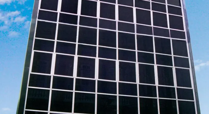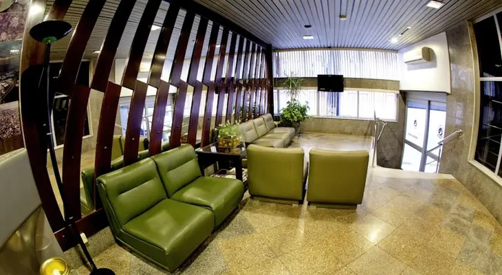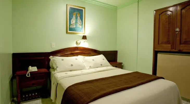 “Rooms here are clean though rather dark, with bold mint-green walls, attractive wood headboards, granite-topped writing desks, pedestal sinks and tinted-glass shower doors.”