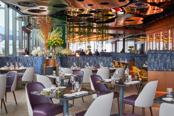 "This restaurant is perched high above the city and offers panoramic views from floor-to-ceiling windows...the views are accompanied by a tempting menu that draws on ingredients sourced within 50 miles" Full review