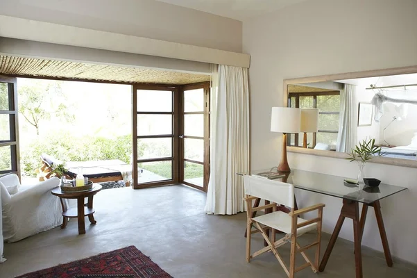 “Aside from lounging in front of the long infinity pool, the emphasis here is on wellness, with yoga sessions, massages, and mostly vegetarian meals, as well as detox packages and cleanses.”
