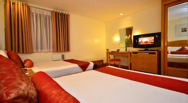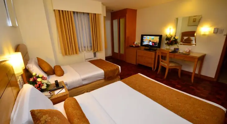 “Standard hotel with sparsely furnished but clean a/c rooms and a reasonable coffee shop in the lobby; Filipino buffet breakfast included.”