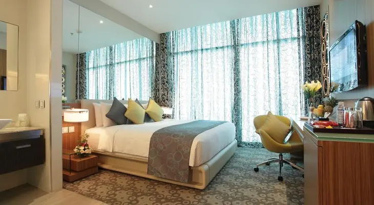 “Most original boutique in Manila, with a chic “aqua” theme and fabulous views of the bay or Ocean World pool (for the nightly fountain shows).”