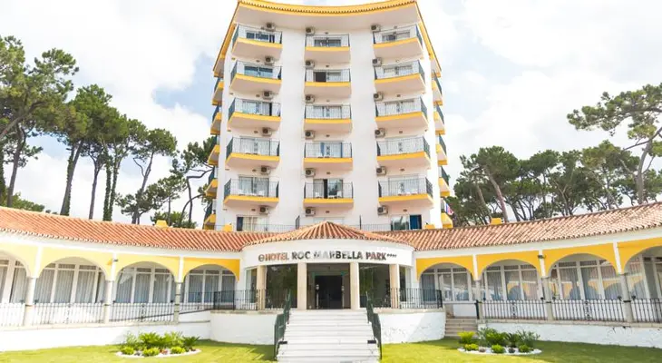 “The 281-room Hotel Roc Marbella is a two-and-a-half-pearl hotel located in a pine forest about 15 minutes outside Marbella.”