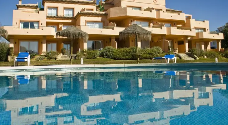 “Andalusian-style village resort on Marbella’s Golden Mile with seven restaurants and a posh beach club.”