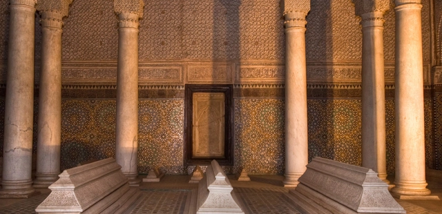 "Saadian Sultan Ahmed al-Mansour ed-Dahbi spared no expense on his tomb, importing Italian Carrara marble and gilding honeycomb muqarnas (decorative plasterwork) with pure gold." Full review
