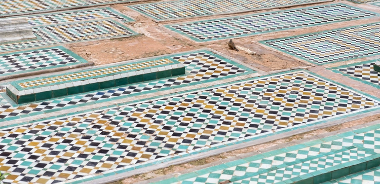 "This high-walled compound, shaded with palms and dotted with bright zellij-topped tombs, is the final resting place of the Saâdian dynasty." Full review