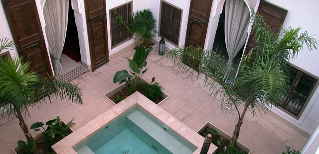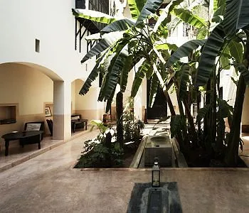 “This Italian-owned riad is sleek and stylish, with sparse but very tasteful modern decor, palms and banana trees in the courtyard and its own hammam.”
