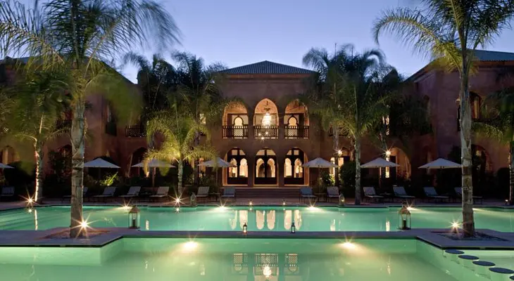 “Lantern-lit gardens, a palm tree–lined pool and a traditional hammam make up this luxe Moroccan hideaway.”
