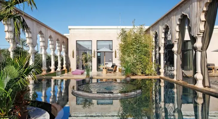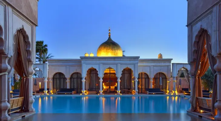 “Palais Namaskar, just outside Marrakech, offers soothing rooms and a rooftop bar with fabulous views of the Atlas mountains.”