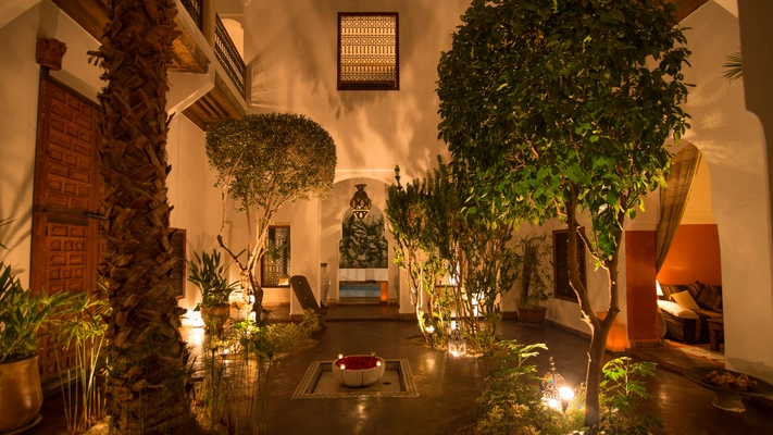 "A smooth blend of French finesse and Moroccan craftsmanship, this boutique riad has high-ceilinged rooms with attention-grabbing details such as Berber rugs, silky tadelakt (hand rubbed plaster) walls, and monochrome shots of Marrakech" Full review