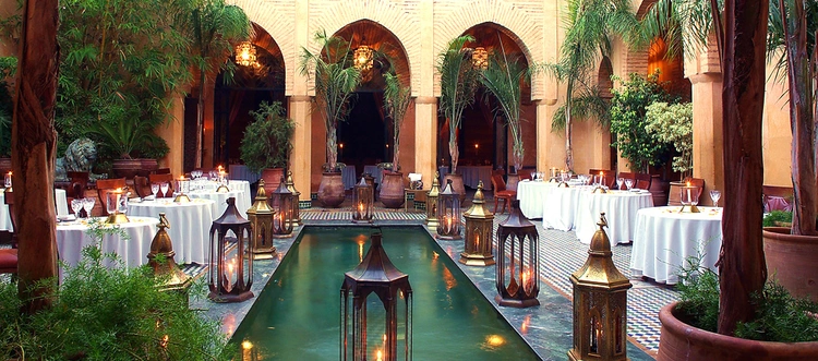 The restaurant has a luxurious feel and yet is comfortable and a tad informal. Good Moroccan and Mediterranean dishes make for a tempting menu. — DK Eyewitness