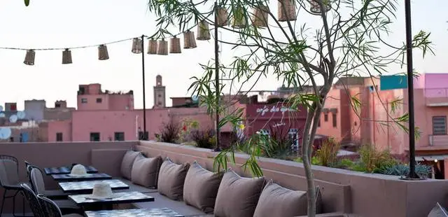 “Café offering refuge from the hubbub and views over the Rahba Kedima from the upper floor and the roof terrace.”