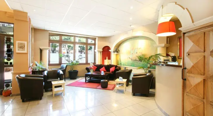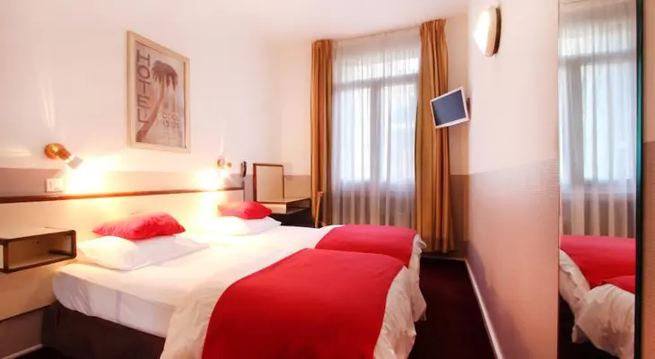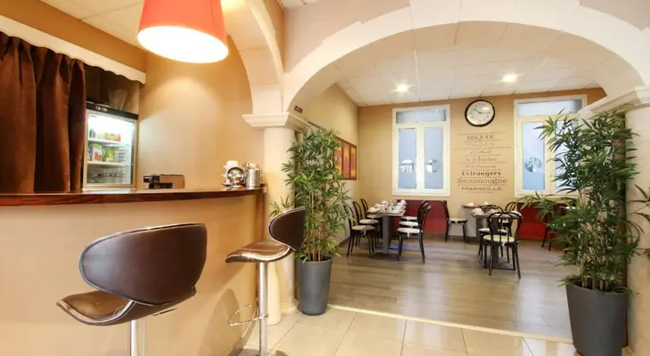 “Pleasant two-star just off La Canebière, with soundproofed and a/c rooms with flatscreen TV. Cheaper rooms have showers; some Superior rooms have larger beds and there are two singles.”