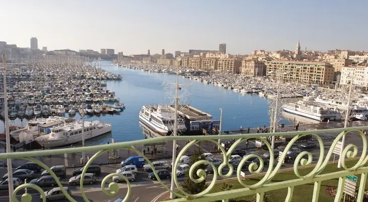 "The Alizé has ringside views of the Vieux Port's carnival atmosphere and across up to the Basilique Notre Dame de la Garde."