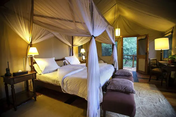 “This attractive eco-friendly camp in game-rich country rests just outside the northwestern border of the reserve, overlooking the Mara River and the Ooloololo escarpment.”