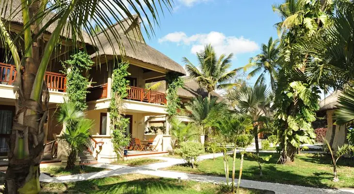 “The family-friendly, upper-middle-range Le Sakoa Hotel is a sweet little beach boutique located in the lively town of Trou aux Biches.”