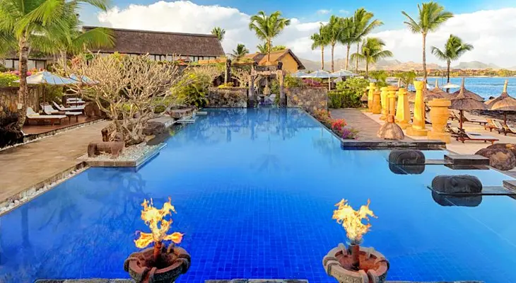 “With opulent palm-thatched villas surrounded by 20 acres of aromatic gardens, The Oberoi hotel in Mauritius is heaven for honeymooners who want beachfront relaxation without having to rough it.”