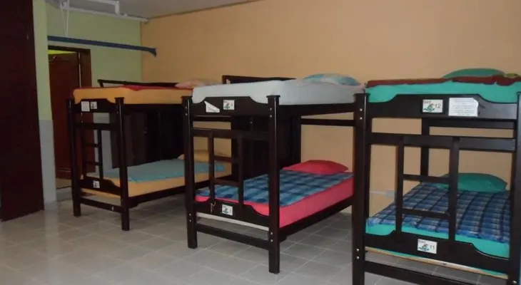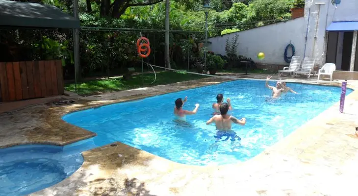 “Party hearty, me hearties! This backpackers’ mini-resort boasts a swimming pool and an Irish-themed sports bar with a monster flat screen TV.”