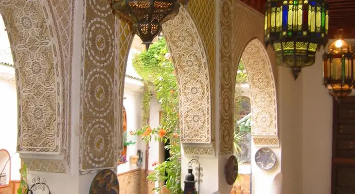 "This large, airy riad is located amid the ruins of the Palais Ksar Chaacha, in a quiet area near Pl Lalla Aouda where few tourists venture." Full review
