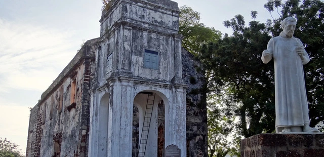“The church was regularly visited by St Francis Xavier, whose marble state – minus his right hand and a few toes – stands in front of the ruin.”