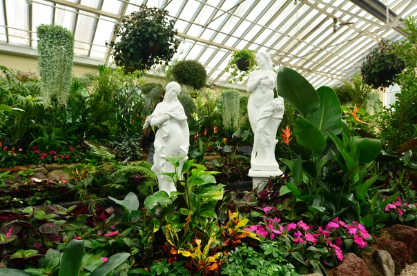 "Within its 100 acres are 12,000 species of native and imported plants and trees, sweeping lawns, and ornamental lakes." Full review