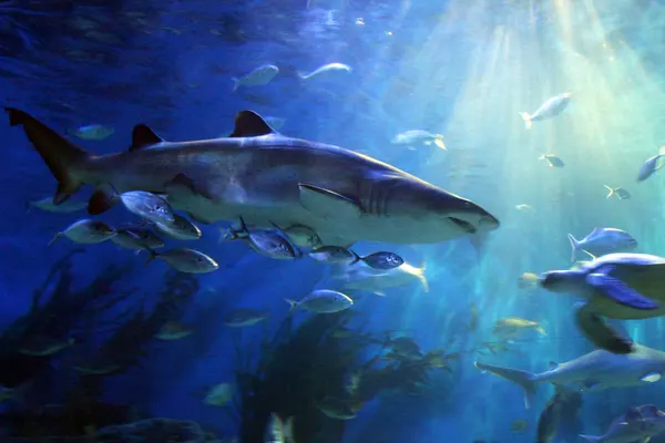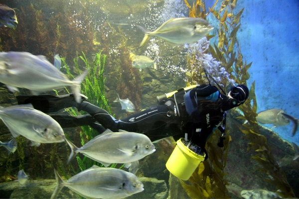 “This aquarium is home to rays, gropers and sharks.”