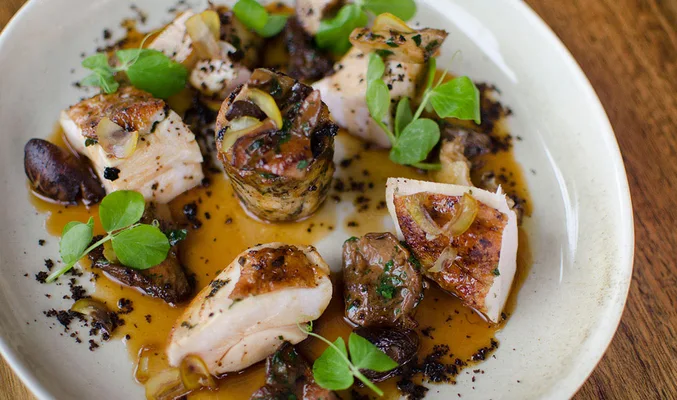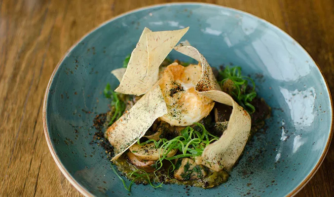 It’s somewhere you can choose between eye fillet and creamed potato or exercise the molars on some perfectly caramelised, toffee-sticky pork lifted by the sweet, citrus-led dressing on a shaved coconut and herb salad.