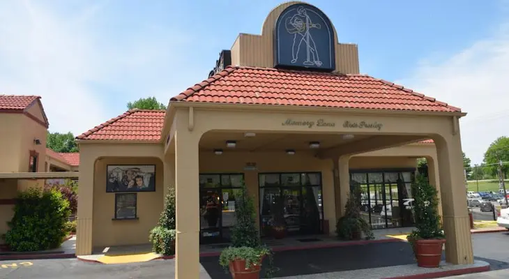 "With a guitar-shaped pool, gold records and Elvis memorabilia in the lobby, and neon Cadillacs on the roof, the Days Inn provides a whole lotta Elvis for the price." Full review
