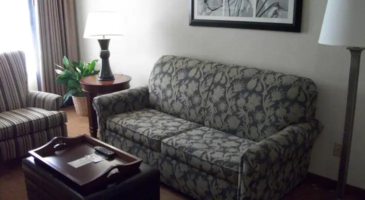 “If you don't mind the location on a wedge of property surrounded by interstate traffic, the Homewood Suites offers clean, casual accommodations.”
