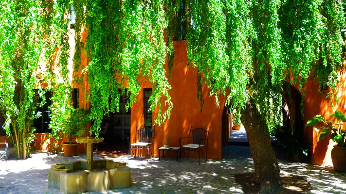"Small finca (ranch) now geared more towards tourism... though still with its own vineyard. The attractive rooms are in an annexe with a jasmine-covered verandah."