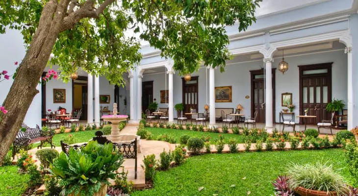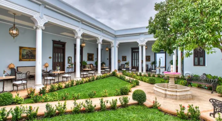 “Declared a historical monument and a Yucatán Heritage site, the French-style "Blue House" is notable for its extraordinary antiques, luxurious fabrics, rose-filled bouquets, and superior service.”