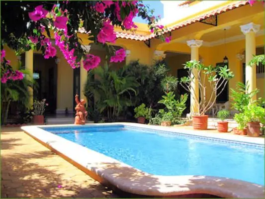 “This grand old traditional Mérida house, with huge patios hidden from the street, has been wonderfully restored by its Canadian-Mexican owners.”
