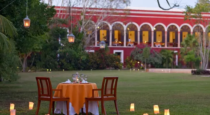 "This magnificent 17th-century estancia presides over 37 hectares (91 acres) of subtropical gardens and cenotes, 39km (24 miles) from Mérida." Full review