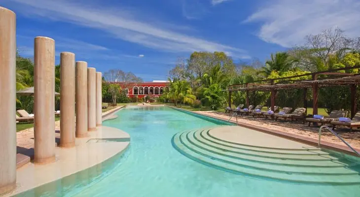 “Large and lavish in its 17th-century architectural grandeur, Hacienda Temozon hotel is a former sisal estate in the Yucatan turned grande dame plantation retreat.”