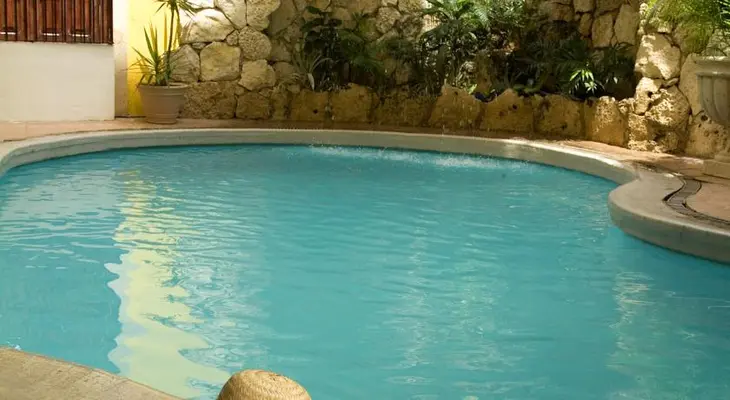 “The Colonial features 73 comfortable rooms in a fairly modern building with a small clover-shaped pool and perhaps Mexico’s smallest bar.”