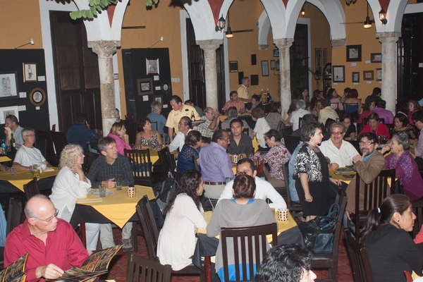 “This peaceful courtyard restaurant, with its walls providing gallery space for local art, lists some interesting vegetarian dishes, such as crema de calabacitas (cream of squash soup).”