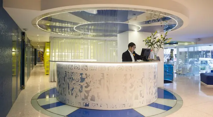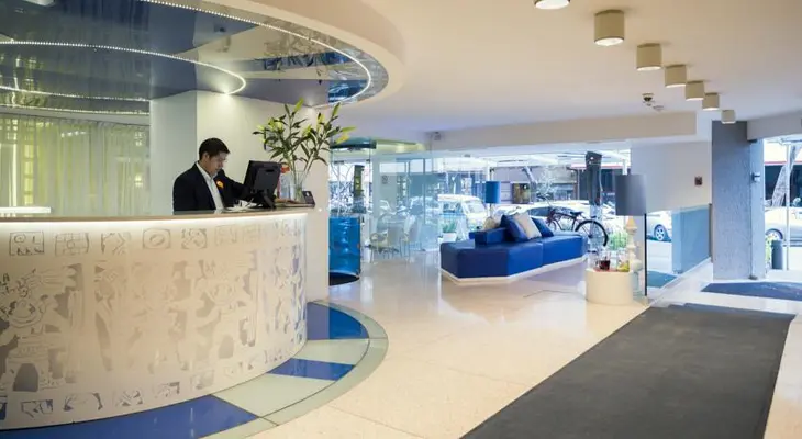 "The decor is minimalist and quirky: walls are awash with electric colors, the furniture is asymmetrical, the accents are futuristic." Full review
