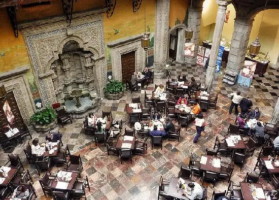 "Flagship Sanborns restaurant in a wonderful sixteenth-century building, with prime seating around a fountain in an enclosed three- storey courtyard."