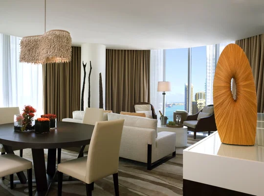This 37-story all-suites property, adjacent to the original historic Fontainebleau hotel, overlooks the Atlantic Ocean, the Intracoastal Waterway and downtown Miami. — Gayot