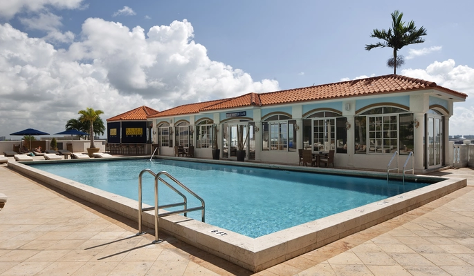 "This 34-story tall landmark hotel with 641 guest rooms and suites is located within walking distance of the international Bayside Marketplace and central to the city's business district."