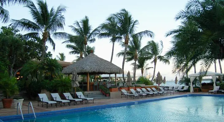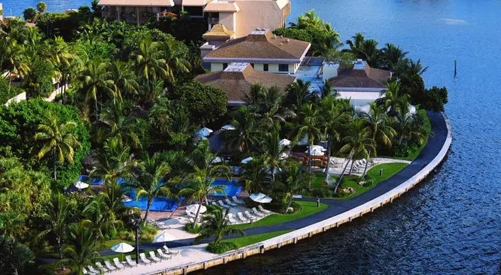 “Surrounded by tropical gardens, the Grove Isle Hotel & Spa is located on a 20-acre private island in Biscayne Bay.”