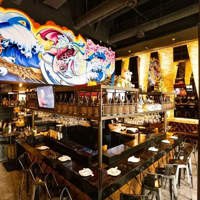 "The industrial space lined with concrete floors, exposed air ducts and Japanese anime murals exudes an upscale-casual vibe that matches the midrange tabs and hip list of sake, wine and microbrews." Full review