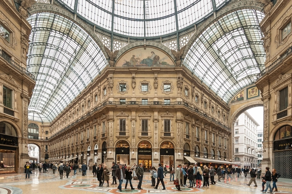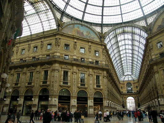 “The magnificent Vittorio Emanuele II Gallery, completed in 1877 (designed by Giuseppe Mengoni), is emblematic of Milan.”