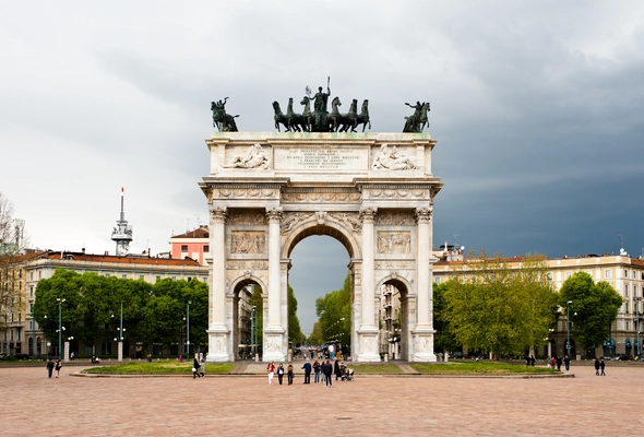 "Originally the gardens and parade grounds of the Castello Sforzesco, this open space was reorganized during the Napoleonic era, when the arena on its northeast side was constructed." Full review