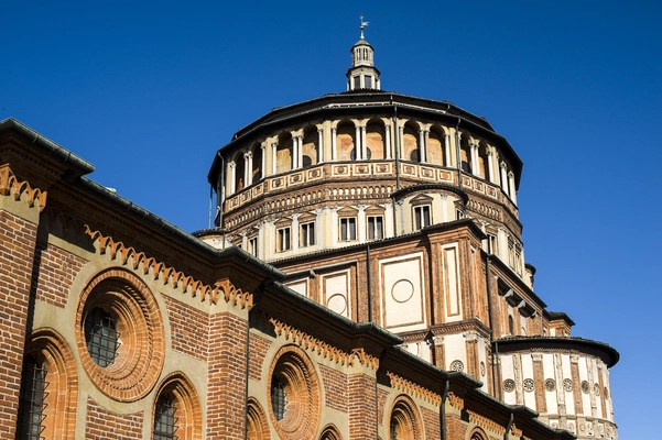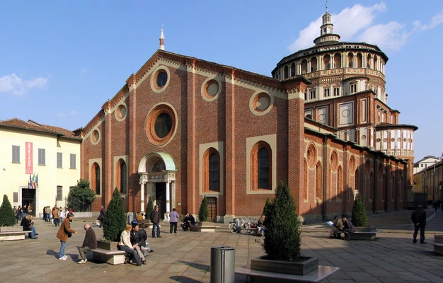 "Delightful Lombard Renaissance church of Santa Maria delle Grazie...the church itself, a clash of styles is evident between Solari’s heavily frescoed Gothic nave and Bramante’s airy, somber apse." Full review